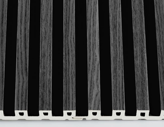 Disponibile nelle finiture opache in Cedar, Teak, Walnut e Charcoal nel formato 13x149x2800 mm.